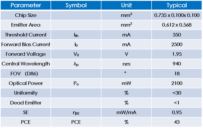 非規則陣列940nm VCSEL 功率:1.75W PCE:42% 可定制pattern開發